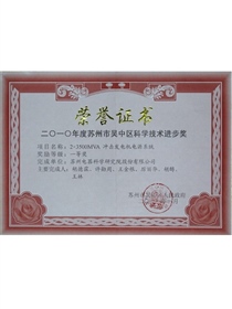 2012 Suzhou Civic Third Prize for Progress in Science and Technology (Transformer)