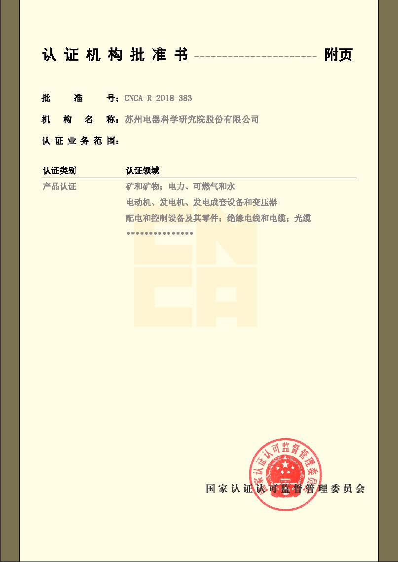 中国船级社产品检测和试验机构认可证书(电器产品)反面