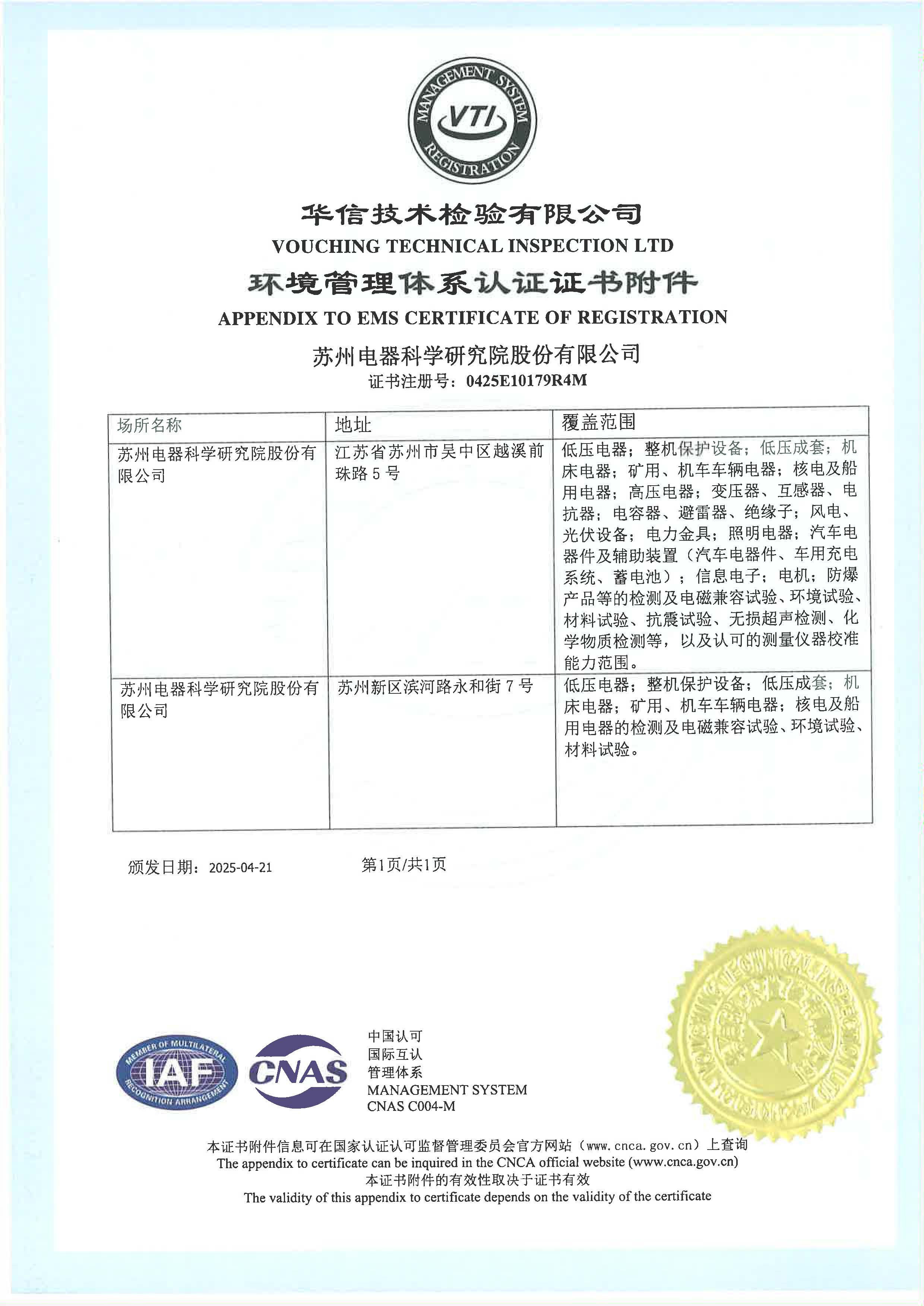 环境管理体系认证证书(GB/T24001-2016 idt ISO14001:2015)附件