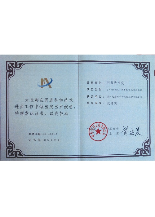 中国机械工业科学技术奖证书-科技进步奖三等奖